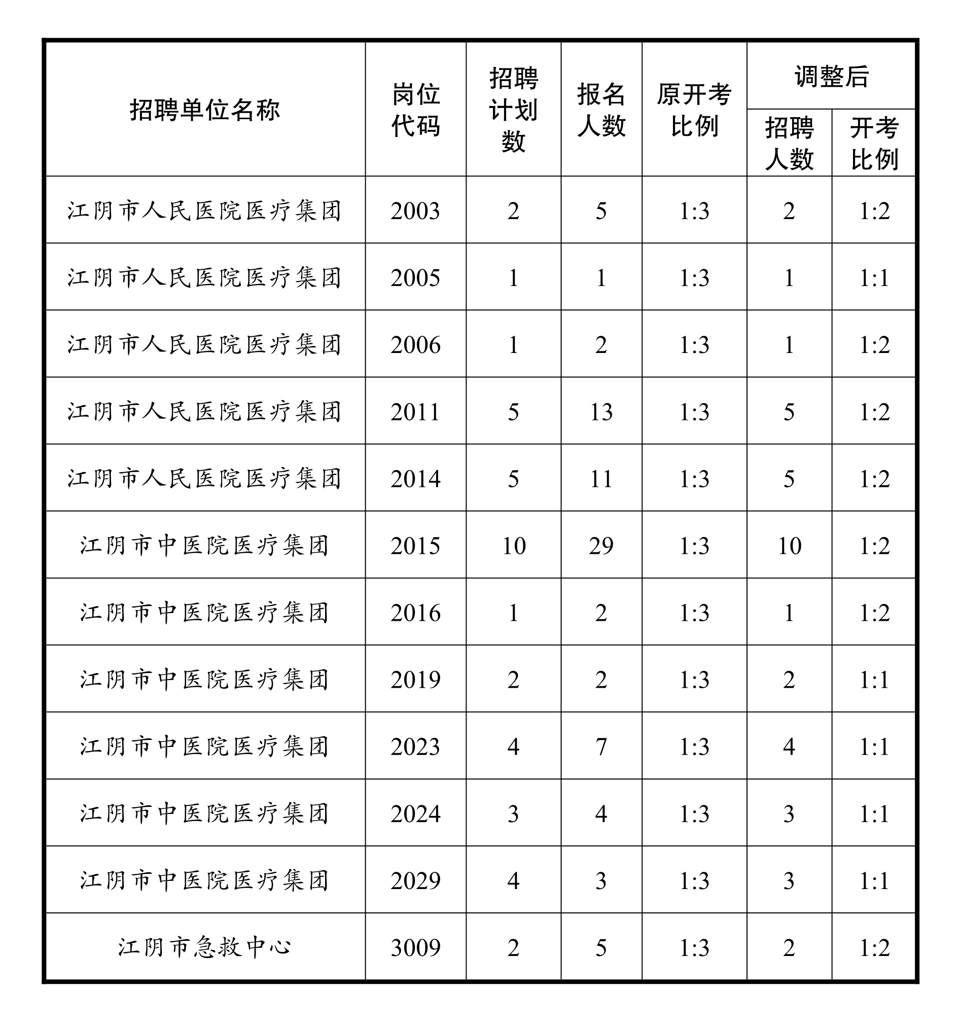 關(guān)于2020年江陰市醫(yī)療衛(wèi)生事業(yè)單位公開招聘工作人員計(jì)劃調(diào)整的公告