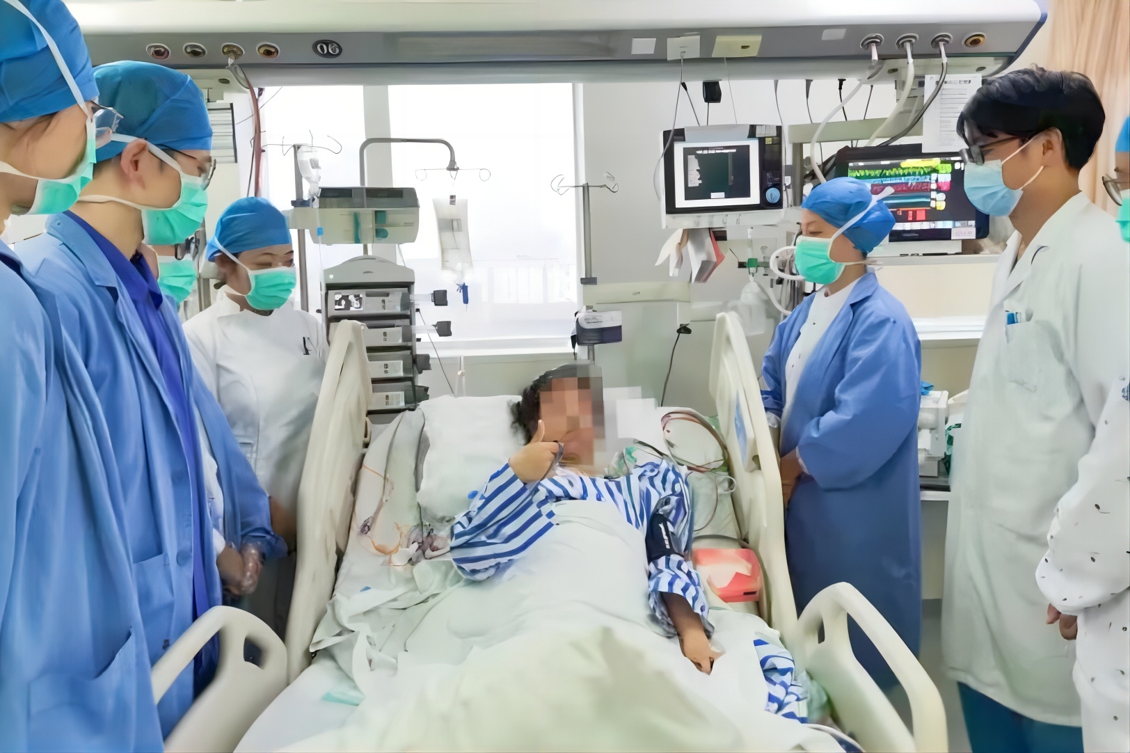 晚上11時(shí)半,ECMO團(tuán)隊(duì)成員們集結(jié)到了急救室。20分鐘后,VA-ECMO循環(huán)便成功建立,鮮紅的血液進(jìn)入了患者的體內(nèi),患者全身灌注得到明顯改善,末梢血運(yùn)逐漸恢復(fù),轉(zhuǎn)至城中院區(qū)重癥醫(yī)學(xué)科病房。