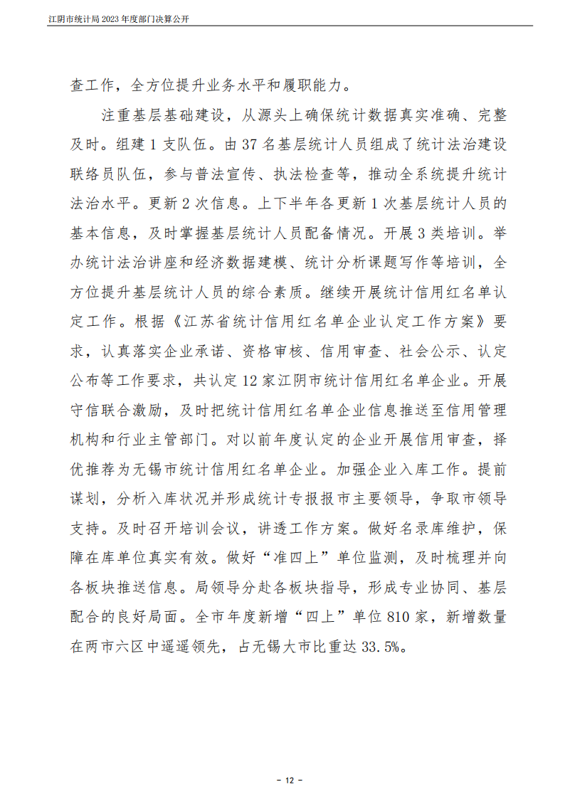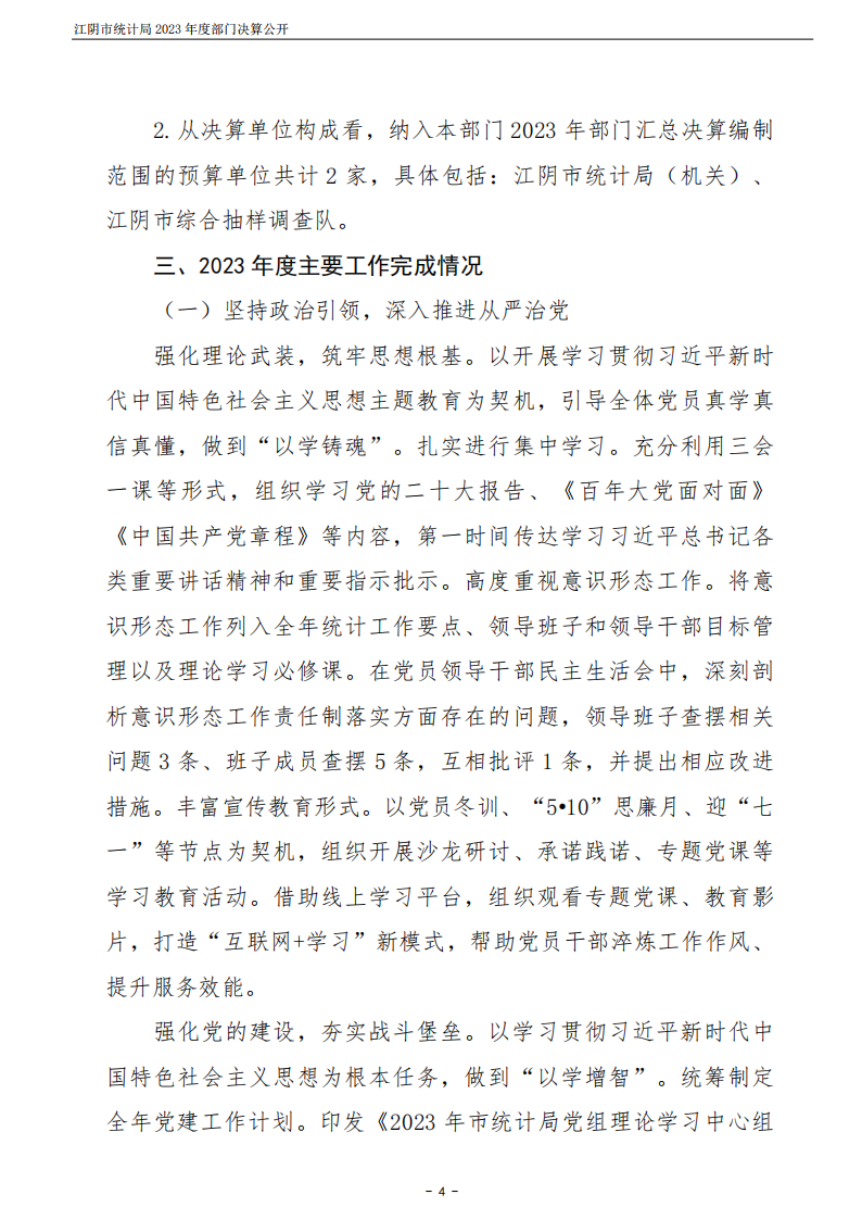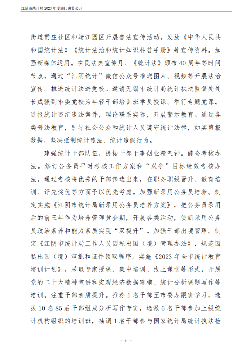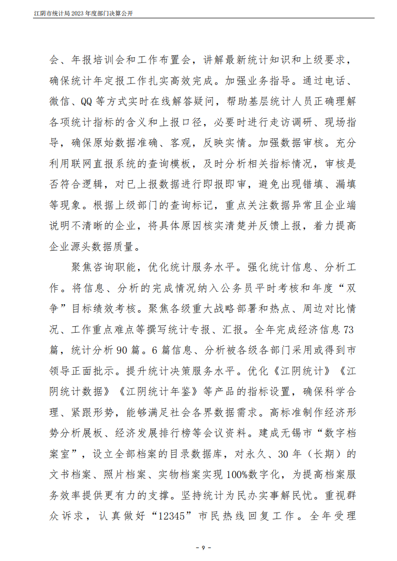 江陰市統(tǒng)計(jì)局2023年度部門決算公開