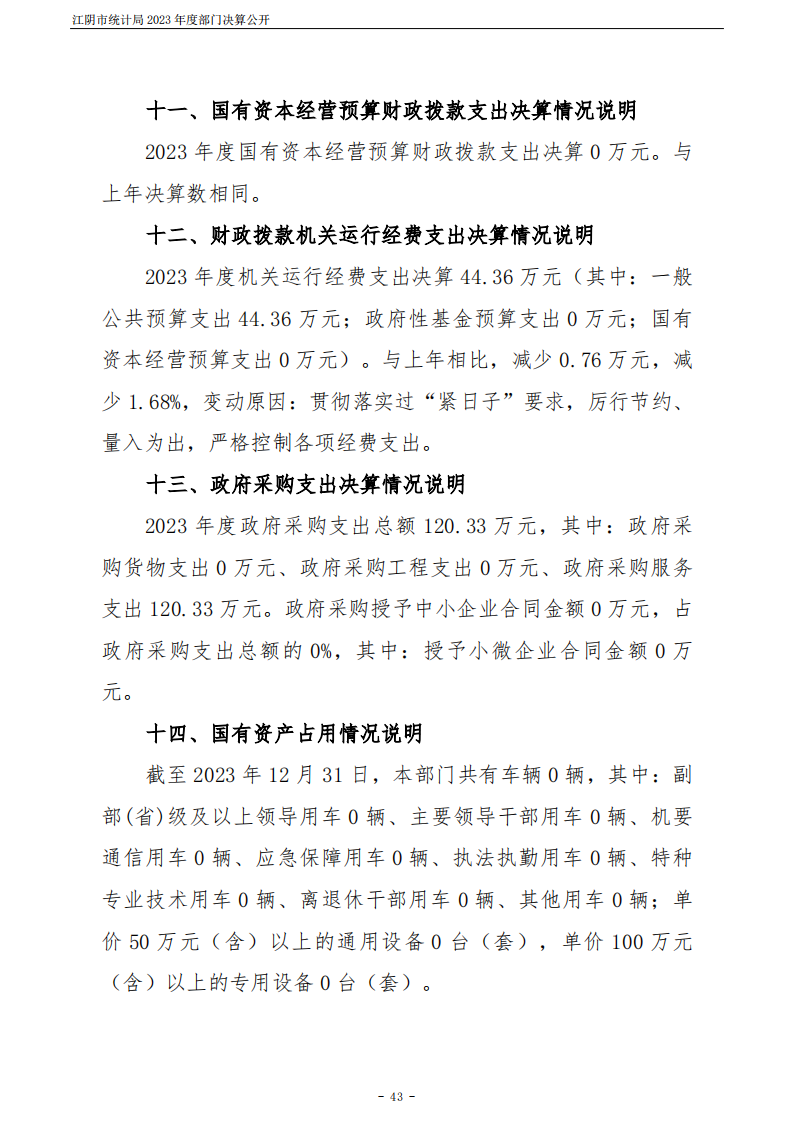 江陰市統(tǒng)計(jì)局2023年度部門決算公開 |