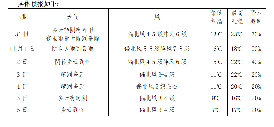 202424(31日后期至11月1日有明顯風(fēng)雨天氣) |