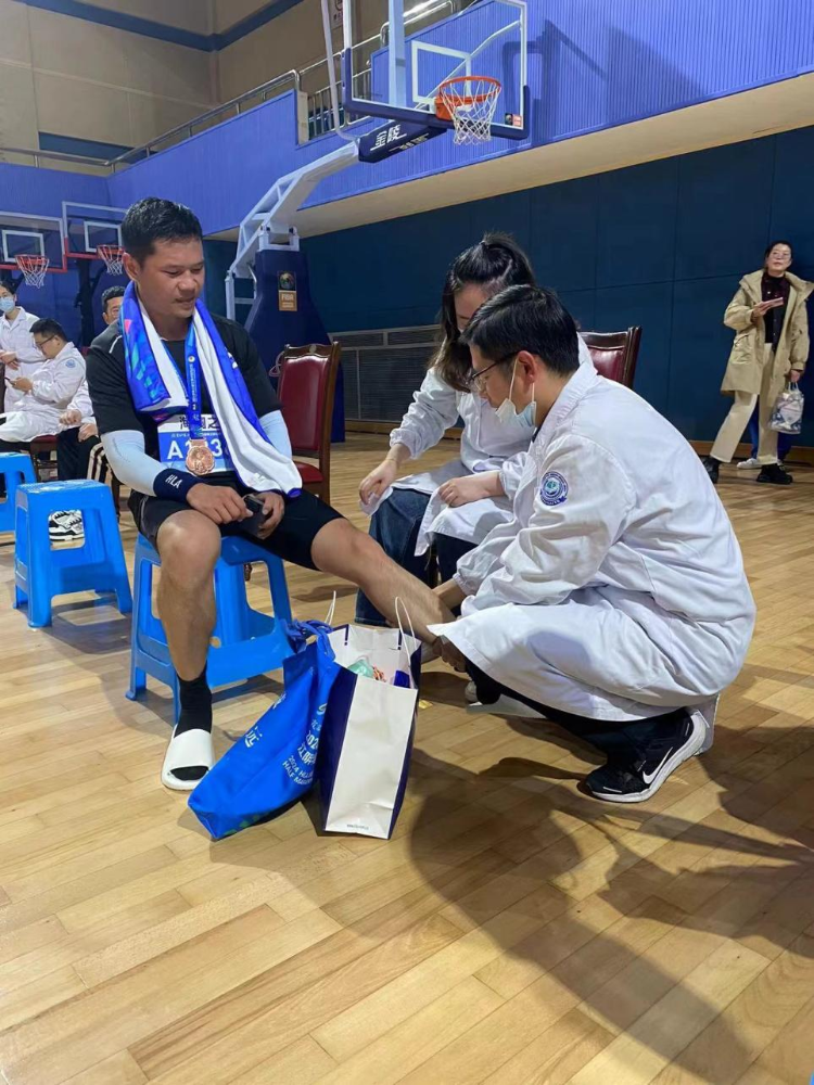 5、運動賽事保障。繼續(xù)參與保障2024年“無錫杯”足球聯(lián)賽;同時參與了2024海瀾之家江陰市和美鄉(xiāng)村籃球聯(lián)賽(村BA)的賽事保障工作,通過專業(yè)的手法,為比賽過程中肌肉疲勞,運動損傷的參與者,提供康復服務(wù),并進行科學健身指導,從科學的角度幫助參與者提高比賽成績、減少運動傷害。另外,我們還主動走入社區(qū),為多場社區(qū)運動會,如江陰市全民健身運動會暨“中國體育彩票”市社區(qū)運動會,全民運動會進行保障及科學健身指導,通過一系列群眾喜聞樂見的比賽項目,加強對運動促進健康觀念的傳導,提高市民的健康意識。
