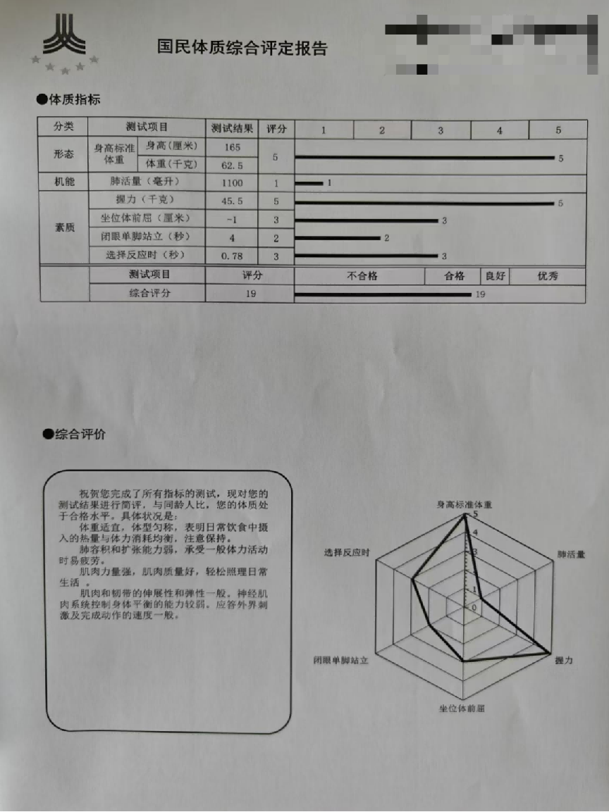 4.國民體質(zhì)監(jiān)測。江陰市在體育中心設(shè)置了國民體質(zhì)監(jiān)測固定站點,在多個鄉(xiāng)鎮(zhèn)和社區(qū)設(shè)立了國民體質(zhì)監(jiān)測臨時站點,配備了身高測試儀、體重測試儀、肺活量測試儀、握力測試儀、縱跳測試儀、鼻炎單腳站立測試儀、選擇反應(yīng)時測試儀、坐位體前屈測試儀,臺階測試儀等多種專業(yè)監(jiān)測器材。市民可通過網(wǎng)絡(luò)預約,免費進行體質(zhì)監(jiān)測。監(jiān)測完成后,市民可以獲得一份個性化的體質(zhì)健康報告和量身定制的“運動處方”。國民體質(zhì)監(jiān)測站的開放,除了給廣大市民提供體質(zhì)監(jiān)測服務(wù),還可針對11項體質(zhì)監(jiān)測項目為市民進行現(xiàn)場體質(zhì)測試評價、健身知識講解及運動健身指導等,幫助市民了解自身的體質(zhì)狀況并掌握科學健身鍛煉知識,獲得有針對性的、細致有效的運動處方,以滿足江陰市民對體育健身的需求。國民體質(zhì)監(jiān)測站同時也是一個體育驛站,除了有場地可以開展羽毛球、籃球等體育鍛煉外,還會不定期舉辦科學健身知識講座、體育公益培訓,為市民提供全方位的運動促進健康服務(wù)。