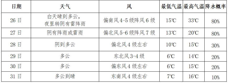 26日夜里到27日有雷雨和大風降溫天氣 |