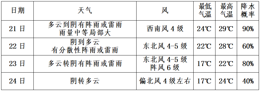氣象資料顯示,未來(lái)幾天我市多降雨天氣,其中20日夜里至21日、23日雨量較為明顯。前期氣溫維持在28℃左右,后期受冷空氣和降雨影響,日最高氣溫降至22~24℃。 綜上所述,本周內(nèi)將多陣雨或雷雨天氣過(guò)程,對(duì)油麥收獲工作略有影響。 建議:關(guān)注天氣預(yù)報(bào),利用晴好天氣做好油麥的收曬工作;加強(qiáng)對(duì)大風(fēng)、強(qiáng)對(duì)流等突發(fā)性災(zāi)害天氣的防范。 |