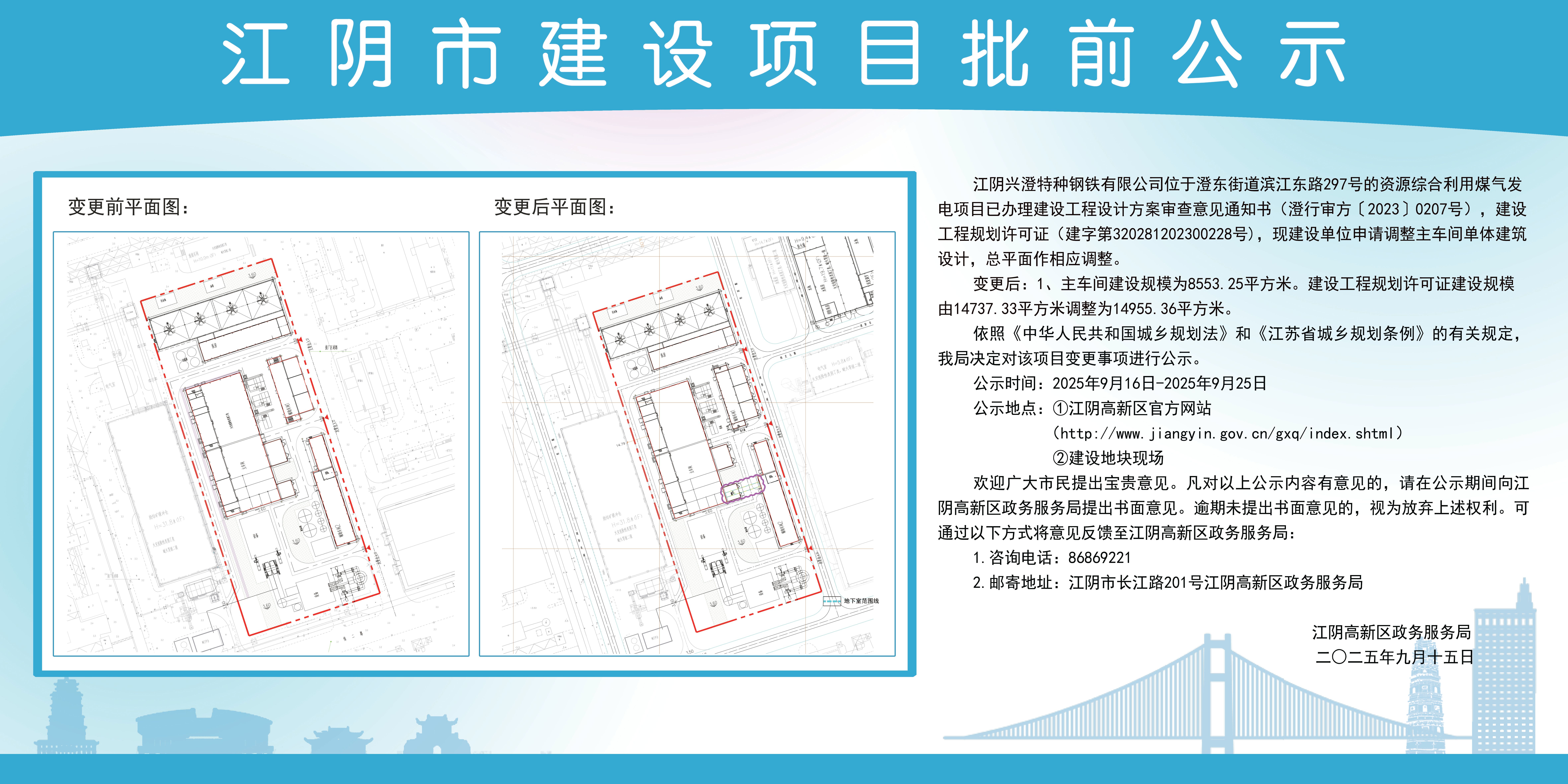 江陰興澄特種鋼鐵有限公司的資源綜合利用煤氣發(fā)電項(xiàng)目方案變更批前公示